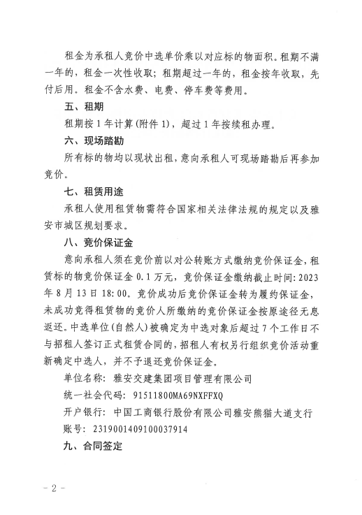 币游集团项目管理有限公司关于雅安多营青衣江大桥左岸桥下可利用地块挂网招租的公告附件