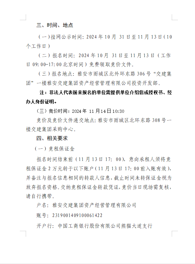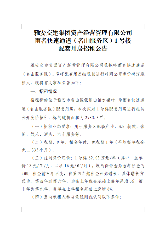 币游集团资产经营管理有限公司雨名快速通道(名山服务区)1号楼配套用房招租公告