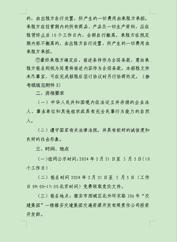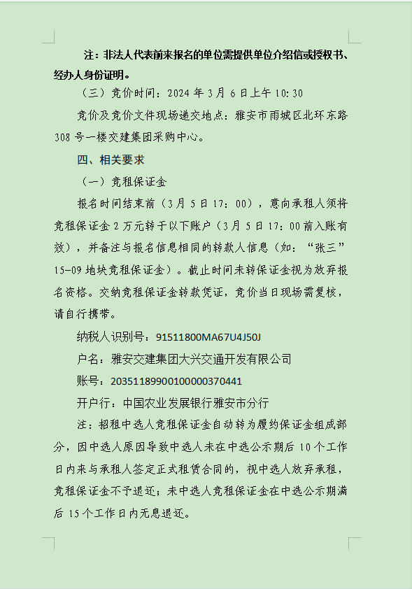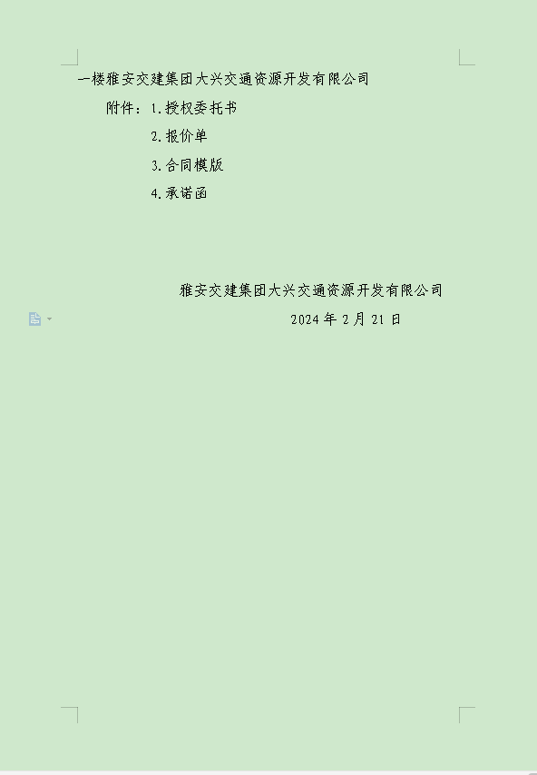 币游集团大兴交通资源开发有限公司关于雨城区姚桥片区15-09地块2024年竞价招租的公告附件