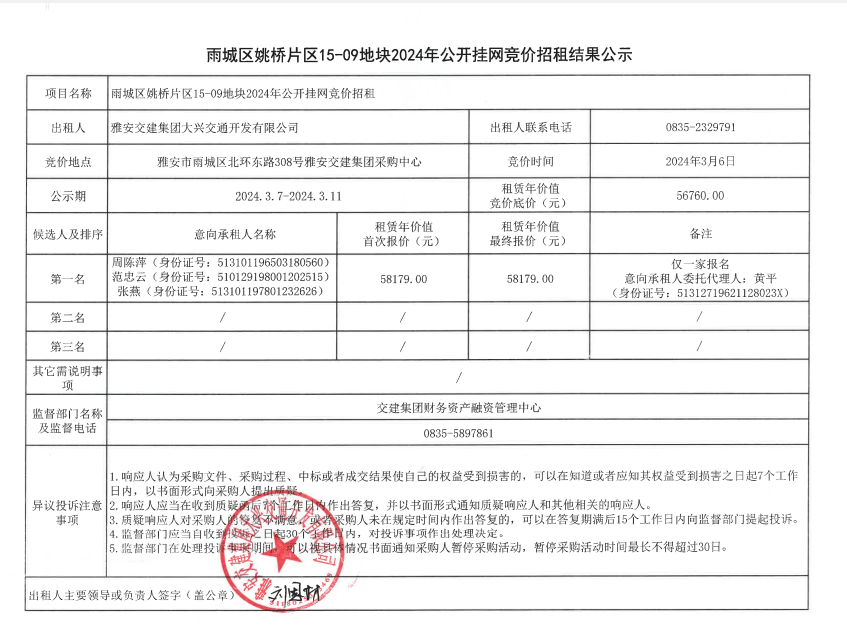 币游集团大兴交通资源开发有限公司关于雨城区姚桥片区15-09地块2024年竞价招租的公告