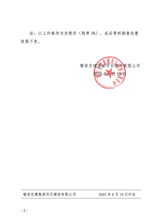 关于公示砂石成品骨料销售价格的通知