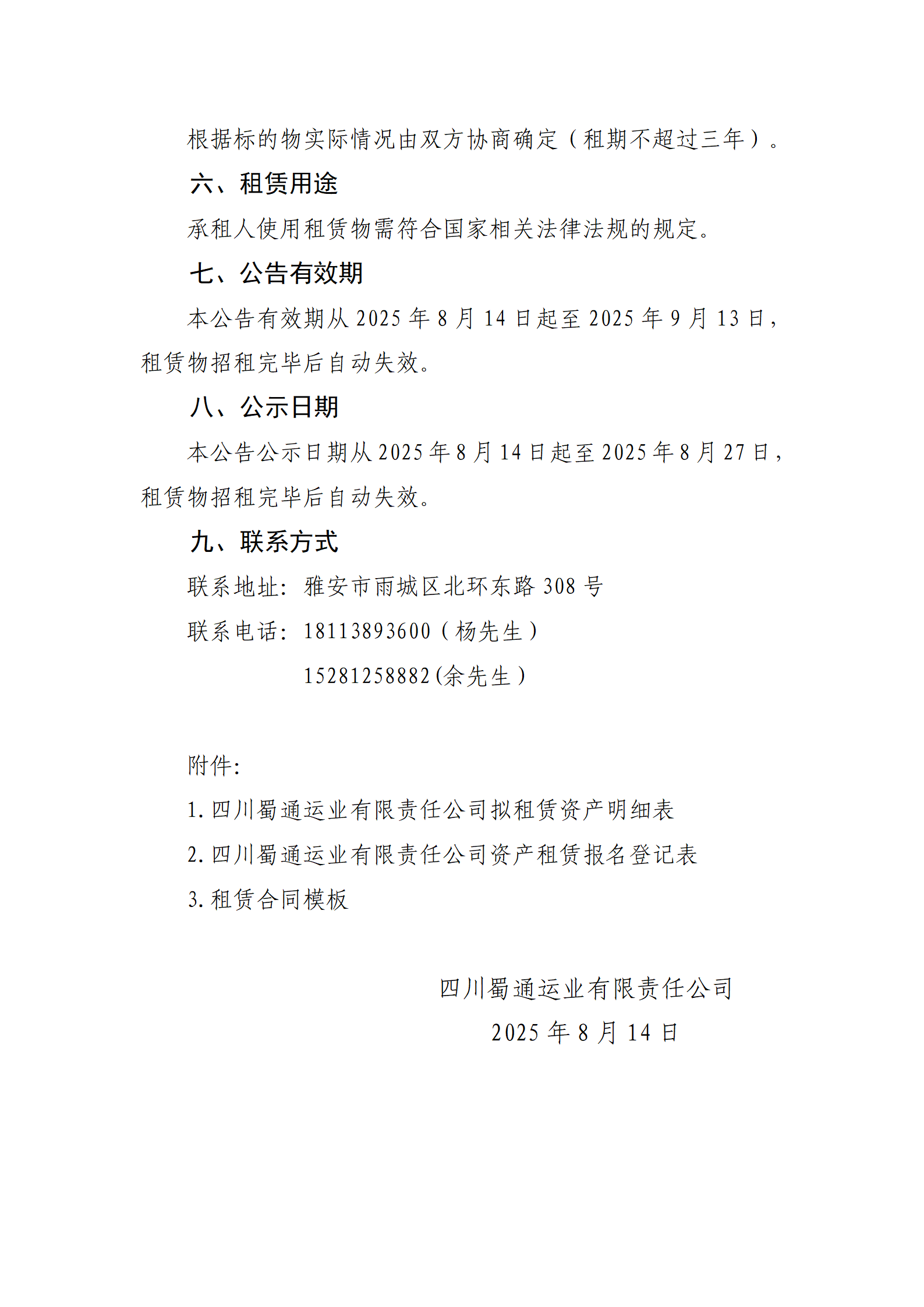 四川蜀通运业有限责任公司 关于九襄汽车站出口右侧维修车间旁边闲置场地进行挂网招租的公告