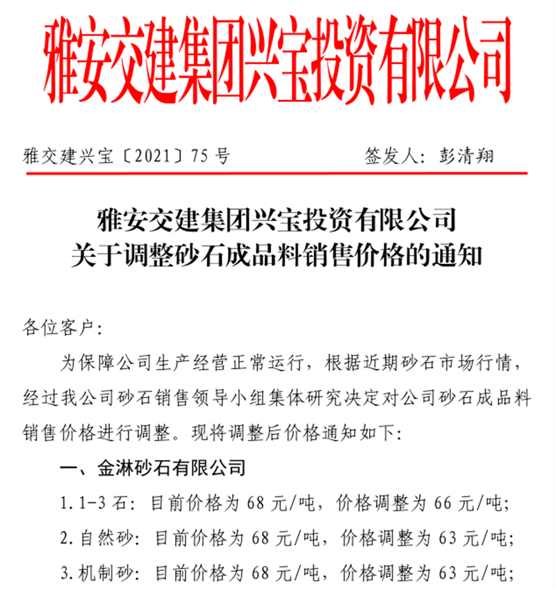 币游集团云石公司关于调整成品料销售价格的通知(2021.11.4)