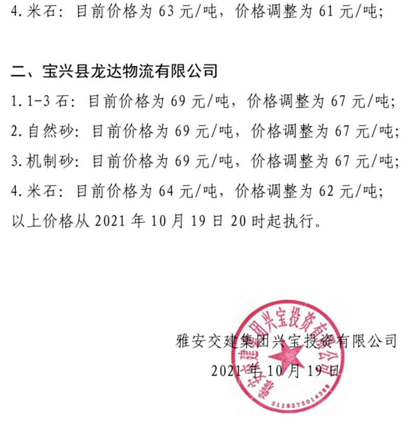 币游集团兴宝公司关于调整成品料销售价格的通知(2021.10.20)