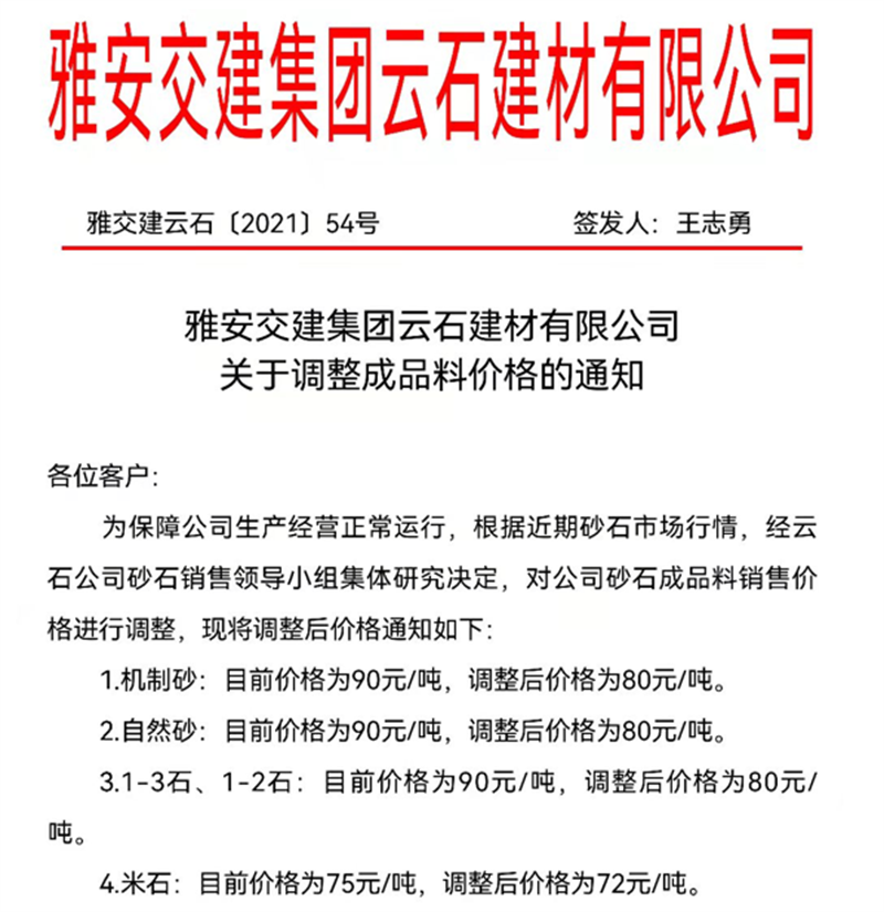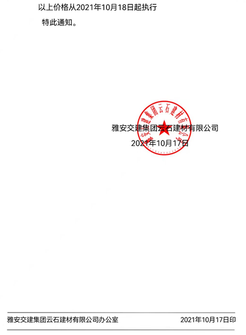 币游集团云石公司关于调整成品料销售价格的通知(2021.10.17)