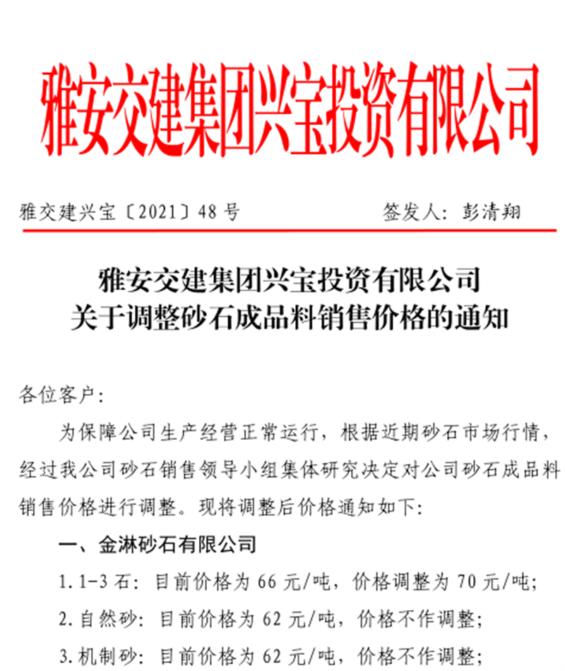 币游集团兴宝公司砂石骨料销售价格情况表(2021.8.12)