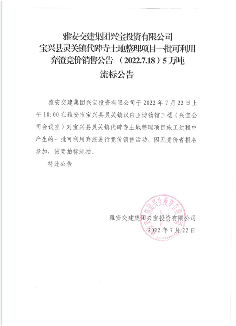兴宝公司流标公告7.18(5万吨)
