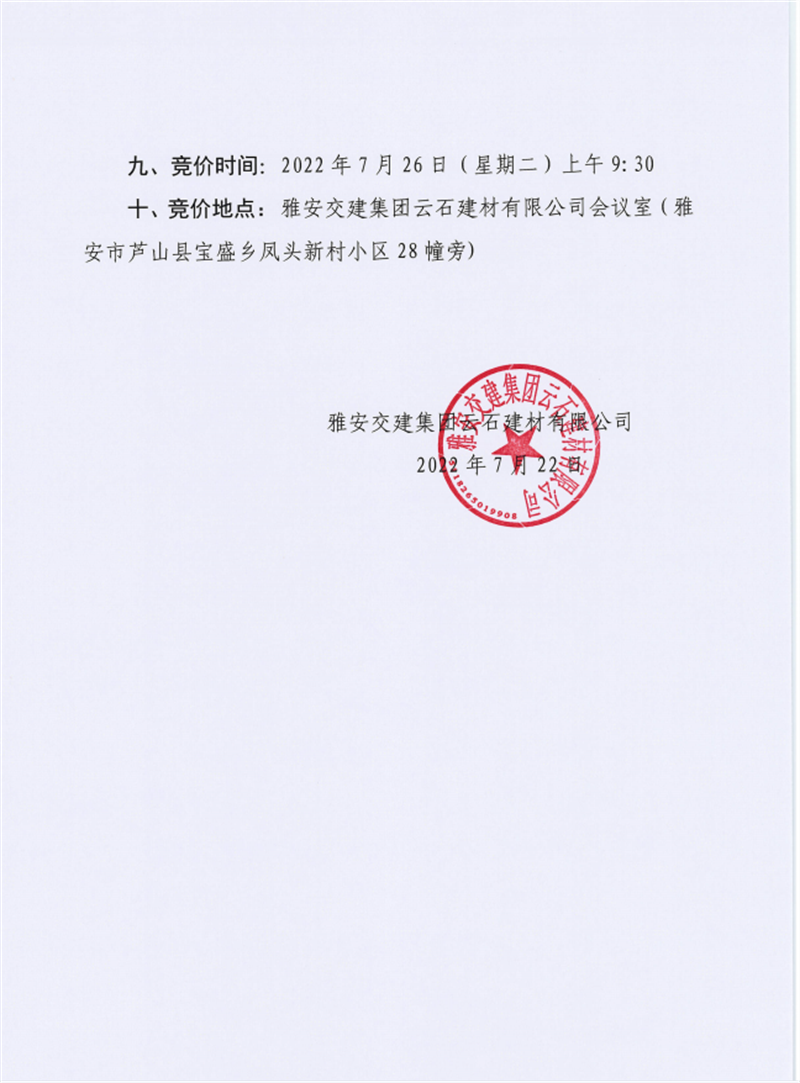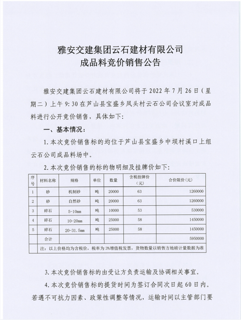 币游集团云石建材有限公司成品料竞价销售公告