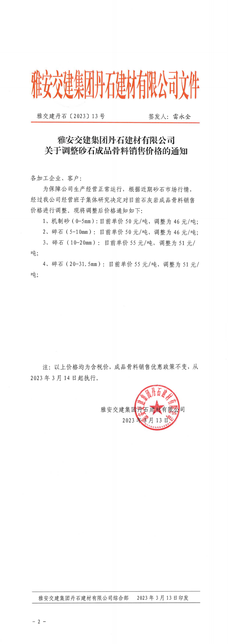 币游集团兴宝投资有限公司关于调整成品料价格的通知(2023.03.13)